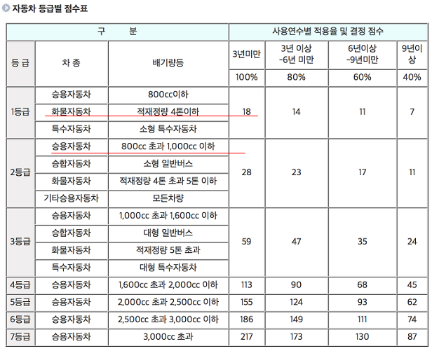 1가구 2대 (경차+화물) 차량을 유지하면 세금이 많이 나올 것 같지만, 회사원은 상관없고 지역 의료보험 가입자라고 해도 경차와 화물차량이라 최하위 점수를 반영하기 때문에 자영업 소지자에게도 부담은 적습니다.