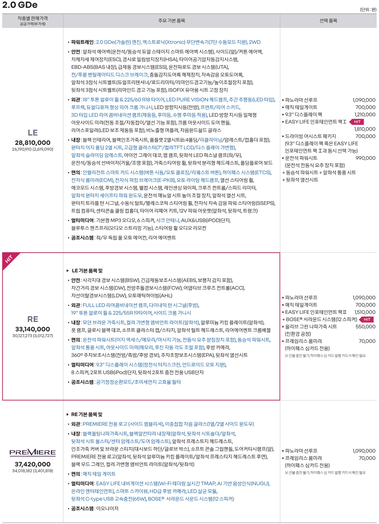 작성일 기준 르노코리아 홈페이지 게시한 2023 QM6 가격표입니다.