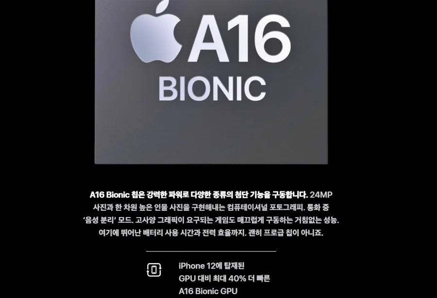 | 프로세서 | A15 Bionic | A16 Bionic |