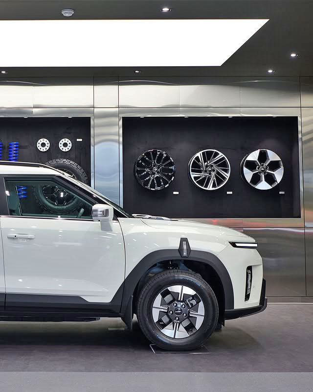 무쏘EV5의 외관은 "강인함과 실용성"을 담았어요. KGM의 디자인 철학 ‘Powered by Toughness’를 반영해, 전면은 토레스 EVX와 비슷하면서도 터프한 범퍼로 차별화했어요.