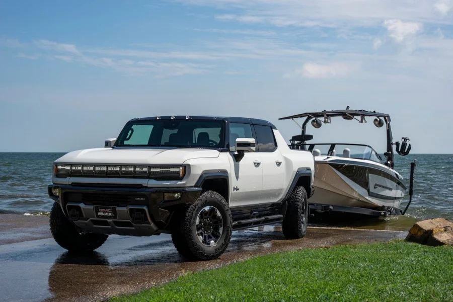 GMC 허머 EV는 2모터 기준 12,000파운드 견인이 가능하지만, 3모터는 8,500파운드로 줄어듭니다. 적재량은 1,300파운드로 낮은 편이에요.