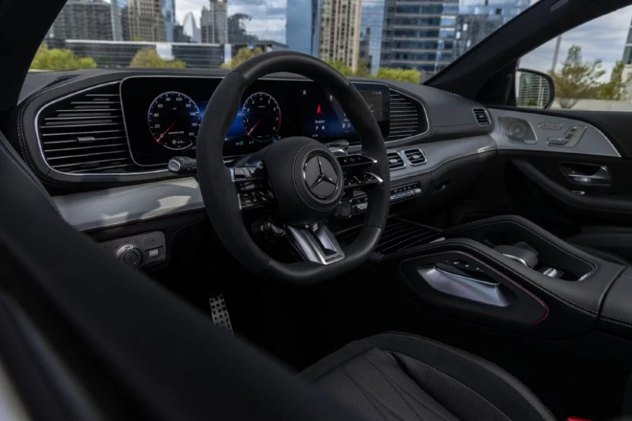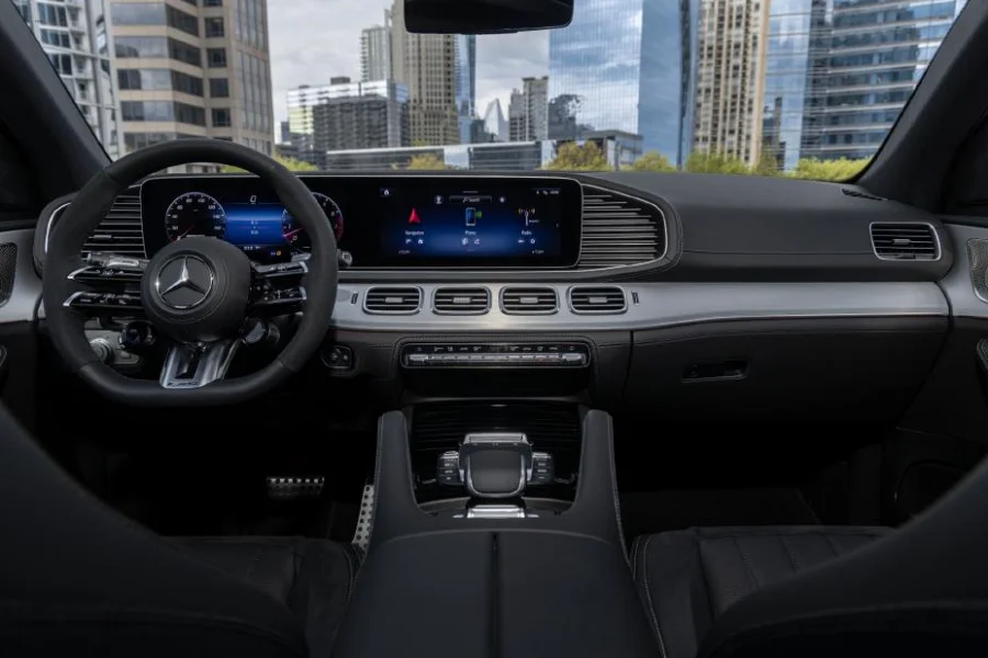 벤츠 GLE 쿠페에는 MBUX라는 AI 인포테인먼트 시스템이 탑재돼 있어요. 음성 인식으로 “안녕, 벤츠”라고 말하면 내비게이션 설정부터 실내 온도 조절까지 가능하죠.