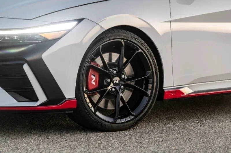 현대 아반떼N의 디자인은 스포티함과 도심 친화적 스타일을 조화시켰습니다. 윙타입 리어 스포일러, 듀얼 머플러, 19인치 휠은 강렬한 첫인상을 주죠. 전장 4,710mm(+15mm), 전고 1,415mm(-5mm)로 날렵한 비율을 완성했어요. 미쉐린 파일럿 스포츠 4S 타이어는 그립력을 강화해 주행 안정성을 높였습니다.
