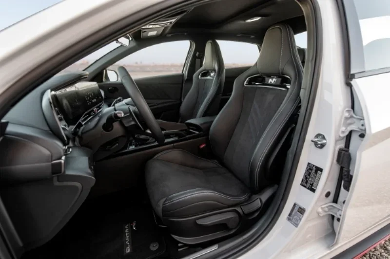 2025년형 현대 아반떼N은 고객 중심 개선으로 상품성을 높였습니다. 전자식 룸미러, 하이패스, 2열 에어벤트가 기본 트림에도 적용돼 편의성이 강화됐죠. 외장 색상은 미라지 그린이 추가돼 개성을 더했어요.
