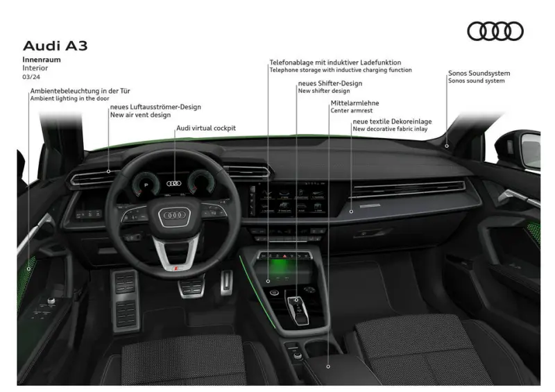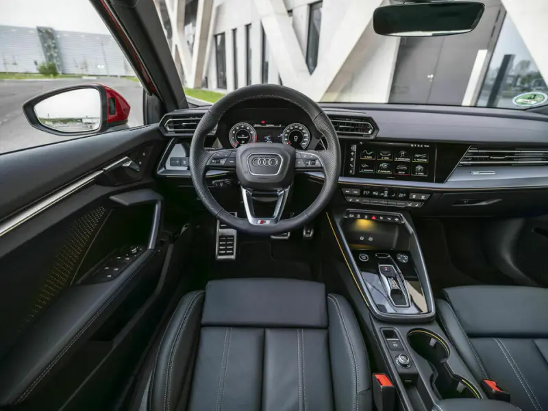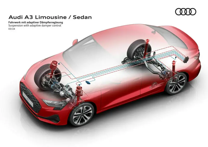 A3의 디자인 방향성은 날렵한 쿠페 스타일과 강렬한 전면 그릴로 요약돼요. 메탈릭 프로그레시브 레드 컬러와 카본 테일게이트 스포일러는 스포티함을 극대화하죠. 실내는 편안한 시트와 대폭 커진 디스플레이로 운전자 중심의 공간을 완성했어요. 도심 주행에서도 역동적인 핸들링이 돋보인답니다.
